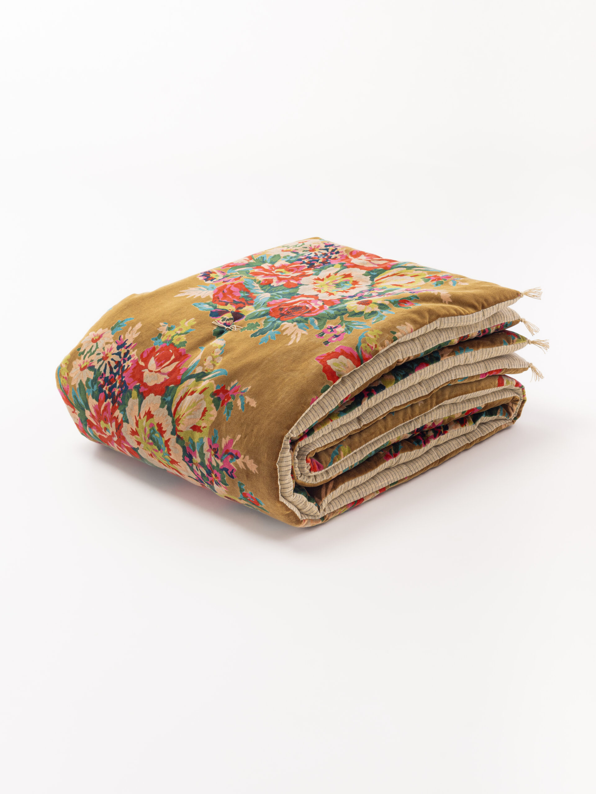 Le coloris Tabac est la nuance idéale pour créer une ambiance feutrée et rassurante. Sur le velours du modèle Bouquet, cette couleur révèle toute sa complexité, oscillant entre le brun chaud et des éclats ambrés. C’est une pièce de textile qui habille instantanément le lit, lui donnant un aspect fini et soigné.