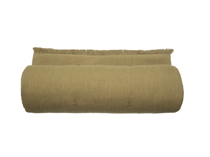 Le chemin de lit PALAFITA kaki se distingue par la qualité supérieure de sa confection artisanale. D’abord, l’utilisation du coton fil teint garantit des nuances de couleurs riches qui résistent magnifiquement au temps. De plus, la finition « lavée » procure une souplesse incomparable et un aspect légèrement texturé. Ce fini particulier apporte un charme brut très recherché dans les intérieurs de style naturel ou bohème chic.