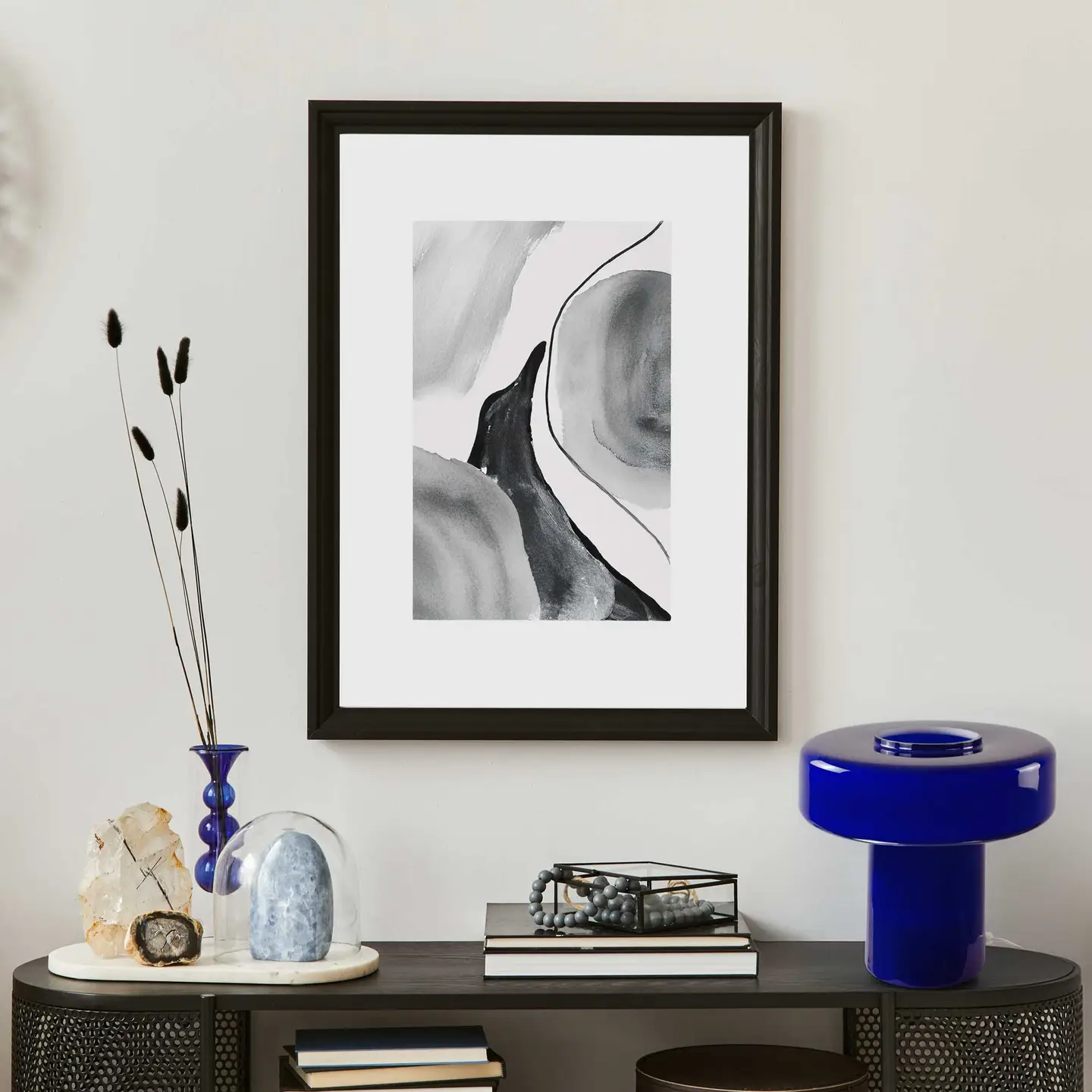 Ensuite, la profondeur de son coloris est saisissante. Par ailleurs, le verre bleu brillant capte la lumière naturelle le jour pour révéler des reflets intenses, tandis qu’une fois allumée, la lampe diffuse une aura tamisée et sophistiquée. Sa finition artisanale souligne la qualité du verre et la pureté de ses lignes.